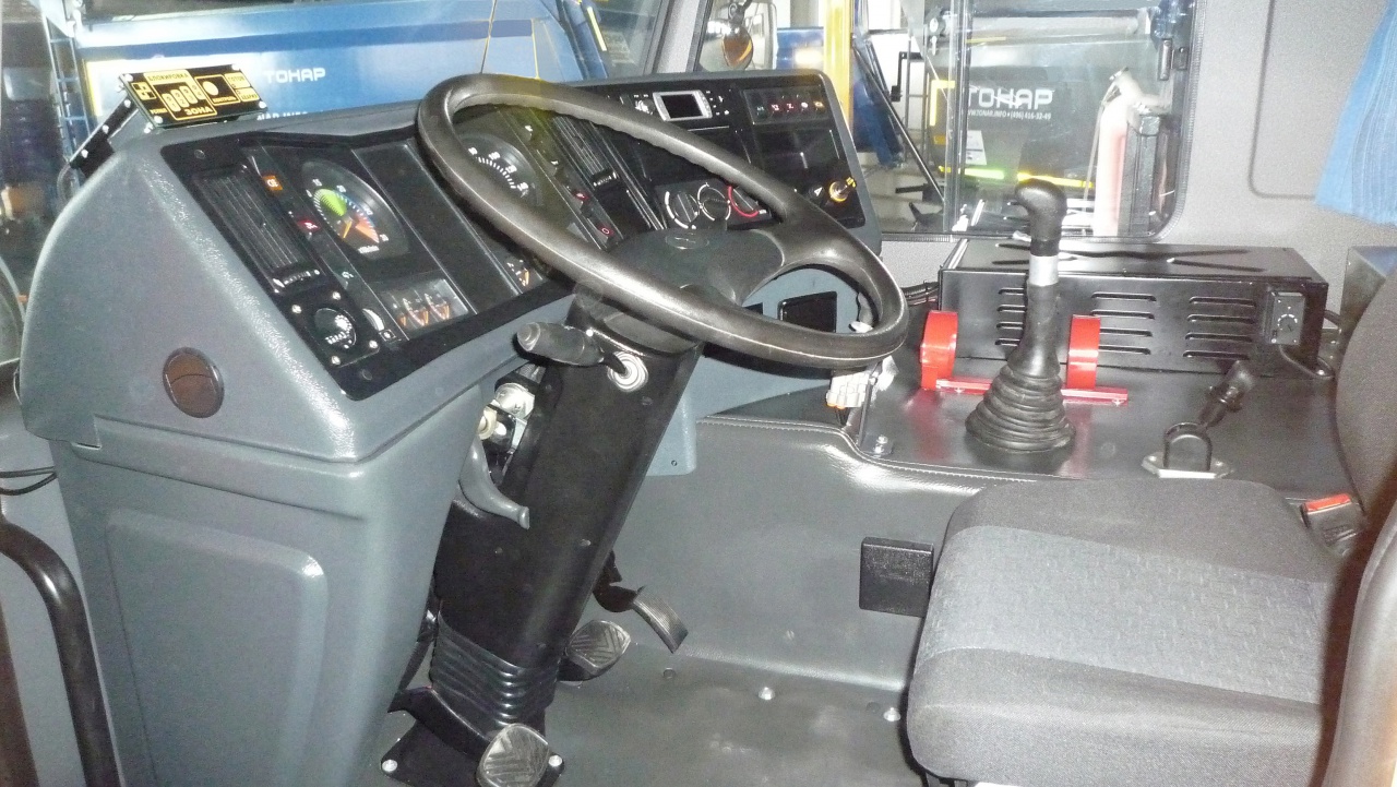 Одноместная однодверная кабина, смещенная к левому борту, подвешена на четырех пружинных амортизаторах и может откидываться вперед, открывая доступ к моторному отсеку. В штатное оснащение входят двухслойное лобовое стекло, трехскоростные стеклоочистители, отопитель, кондиционер, изменяемая по углу наклона рулевая колонка, подвесной педальный узел. Регулируемое сиденье водителя с индивидуальной подвеской снабжено подголовником и ремнями безопасности. Приборная панель вполне информативна.
