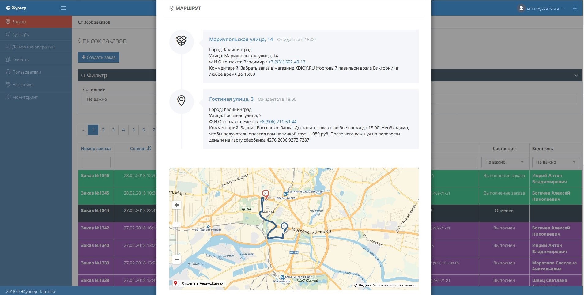Тут вы однозначно экономите на лишних пробегах и времени обработки маршрутов. ЯКурьер можно интегрировать с вашей CRM по API или воспользоваться модулем для 1С.