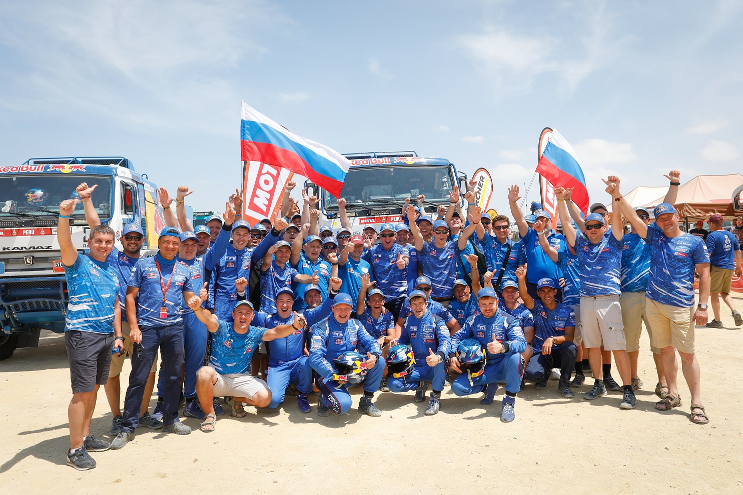 Победу команде принес экипаж Эдуарда Николаева. Следом за ним финишировал экипаж Дмитрия Сотникова, оформив, таким образом, победный дубль. Результат просто блестящий, если учесть, с какими трудностями «КАМАЗ-Мастеру» пришлось сталкиваться по ходу гонки, и брать в расчет изменение регламента, ограничивающего максимальный объем моторов в грузовом зачете с этого года 13 литрами. Из-за этого фактически пришлось заново сконструировать новую машину.