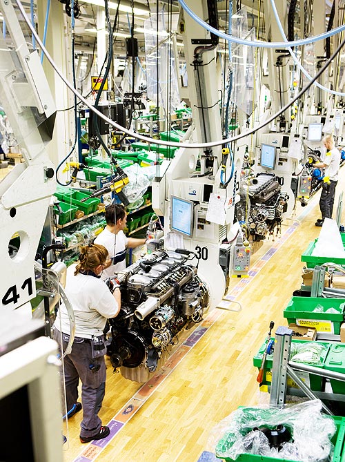 Завод двигателей выпускает всю «линейку» силовых агрегатов, которыми комплектуются грузовики Scania, дорожно-строительная техника, трактора и комбайны, а также морские и речные суда. За год предприятие выпускает более 50 тыс. агрегатов.