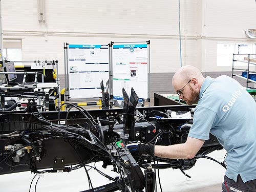 Нам было интересно узнать: «За счет чего же достигается общепризнанное качество сборки Scania?» Оказалось, что это целый комплекс производственных мероприятий. Тут играет роль и оптимальный темп сборки, и несколько степеней контроля, и оптимизация, и ответственность каждого, бригады и цеха.