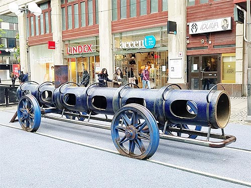 Все началось в 1891 году, когда в Сёдертелье была основана фабрика по производству железнодорожных вагонов - VAGNFABRIKSAKTIEBOLAGET I SÖDERTÄLJE (по-шведски это значит - ООО "Фабрика вагонов в Сёдертелье"), сокращенно VABIS. И в честь нее на главной улице города и сейчас стоит вагонная тележка.