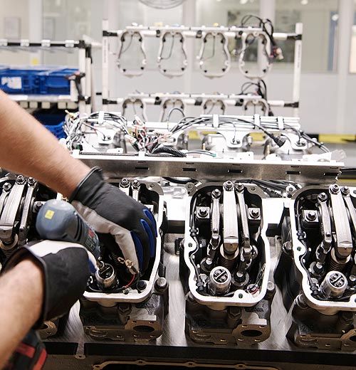 Сборка силовых агрегатов ведется на многопостовом конвейере, после чего двигатели попадают в зону тестов. Здесь к ним подключают контрольные датчики и тестируют «на холодную», то есть видят на приборах все процессы, но сам двигатель вращают электромоторы.