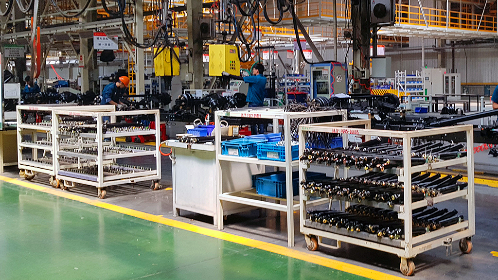 Отметим сразу, что это самая большая производственная площадка в Китае: ее длина составляет 1100 метров. Одновременно на линии может находиться до 43 "заготовок" для будущей техники.
