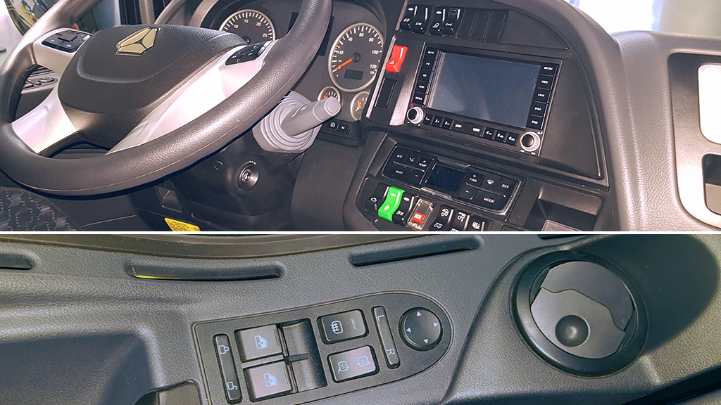 Кнопки и рычаги управления в кабине Sitrak C7H расположены эргономично