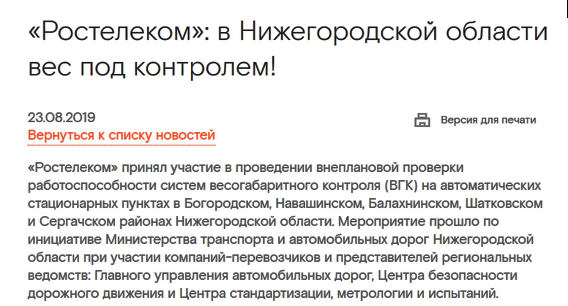 Однако, есть такая штука как переход количества в качество. Количество обращений перевозчиков, видимо, перешло все разумные рамки, и вот результат. На очередном мероприятии в Нижнем Новгороде было озвучено поручение губернатора Нижегородской области разобраться, что происходит на постах АСВГК, бывает ли дым без огня. Оказалось – не бывает.