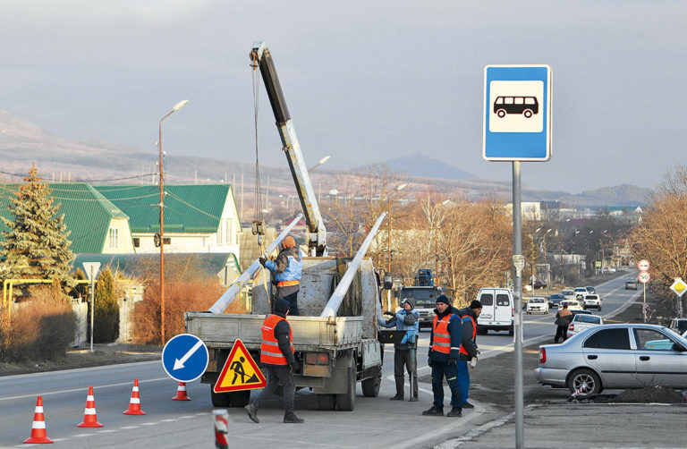 Грузовики с КМУ уже стали визитной карточкой объектов обустройства освещения трасс в Ставропольском крае.