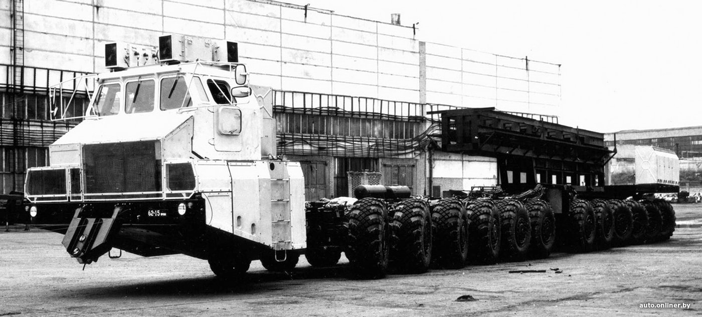 Но была одна проблема: он стоял на реке Березине, а доставить его нужно было на озеро Нарочь. Водного пути между водоемами нет. И тут взялся помочь... Минский завод колесных тягачей. Тогда еще был на ходу транспортер-монстр МАЗ-7907, спроектированный для перспективной ядерной ракеты. Это было 12-осное супершасси с колесной формулой 24×24 и грузоподъемностью 150 т. Машина оснащалась газотурбинным двигателем мощностью 1250 л. с., в один блок с которым входил генератор переменного тока. Последний питал всю электротрансмиссию шасси, которая состояла из 24 электромоторов, установленных внутри рамы по одному на каждое колесо.