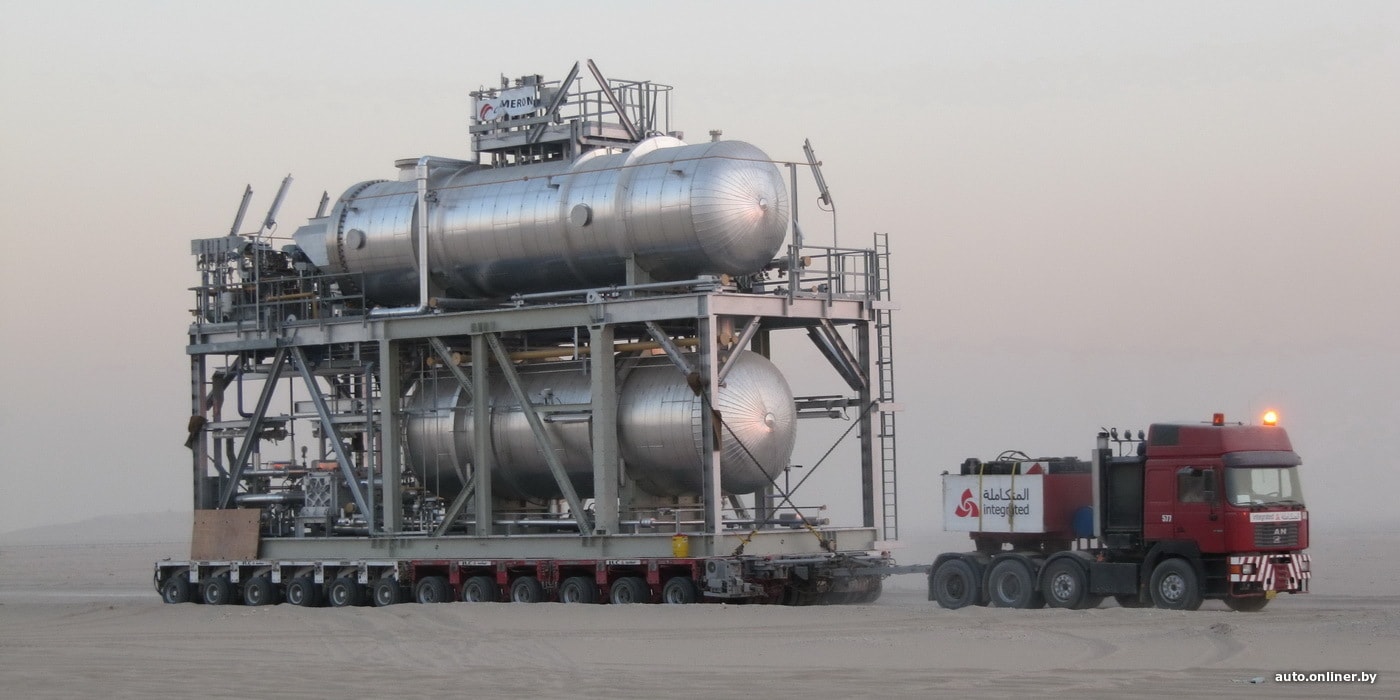 Комплект оборудования только для одной скважины стоит несколько миллионов долларов, а многие его элементы имеют совершенно нестандартную конфигурацию. Чаще всего их доставляют по частям. Но бывают и ситуации, когда ту или иную конструкцию разбирать нельзя, а переместить нужно. Вот здесь вступают в дело перевозчики негабарита. Часто сами производители нефтедобывающего оборудования предусматривают спецтрейлеры, изначально входящие в комплект поставки. И тогда автопоезда приобретают вид инопланетного корабля или как минимум декорации к «Безумному Максу».