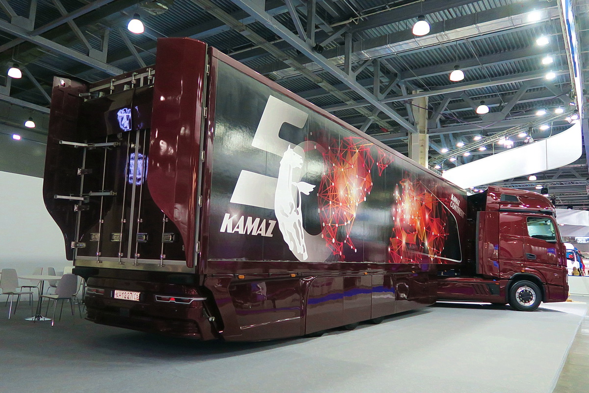 Привезли и люксовый автопоезд по имени Континент, который в 2019 году показывали Путину. Помнится, уже был когда-то прототип с этим же именем, и тоже на Комтрансе — только около двадцати лет назад. Впрочем, подробный рассказ о том экспонате еще ждет читателей в выпусках газеты.