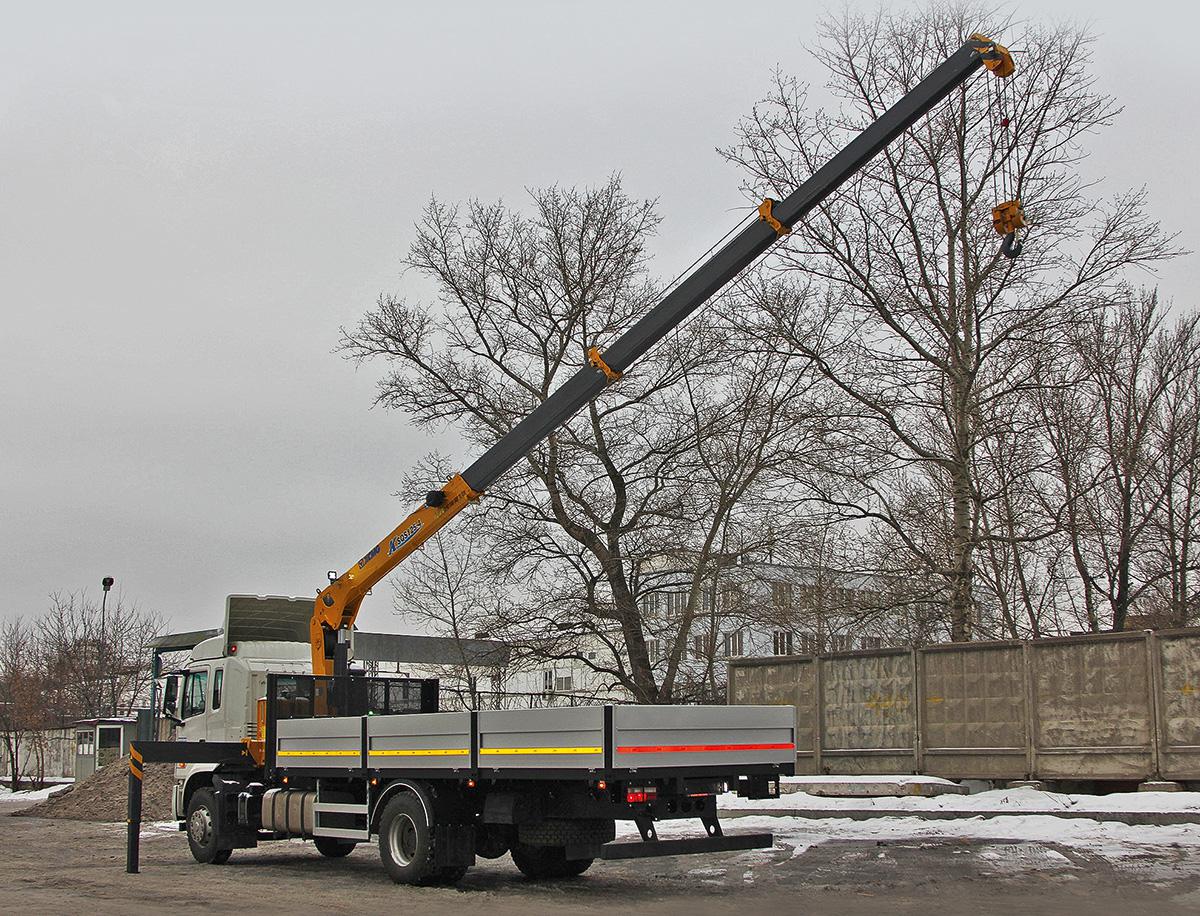 Часто клиенты выбирают классические варианты, но иногда запрашивают эксклюзив. Машина должна быть габаритной длиной не больше 12 м, и особо растянутые борта не поставишь. Например, про 8‑метровый кузов можно забыть: он просто не впишется в габариты. Вообще на грузовиках такого класса клиенты чаще заказывают бортовые платформы длиной от 7 до 7,5 м. Нужно отдавать себе отчет в том, что часть полезной длины «съедает» крановая установка. Кроме того, нужно следить за распределением нагрузок по осям.
