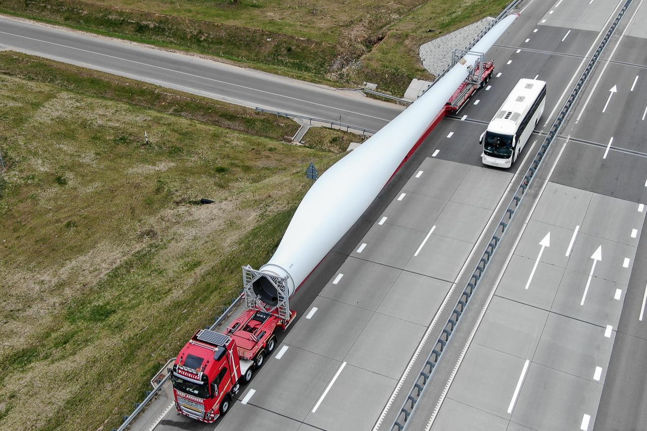 В странах ЕС строят много ветряков. Дальнобойщикам приходится доставлять лопасти к ним. Как правило, они бывают в районе 65 метров. А в 2016 году в Дании везли даже 88-метровую лопасть. Чтобы доставить такой груз нужно провести целую операцию с сопровождением.