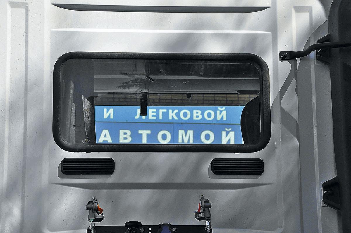 В задней стенке кабины есть большое окно. Перевозчик наверняка его будет заделывать — зима не за горами, а мощной тепло- и шумоизоляцией тягач похвастаться не может. Спасибо, что пол кабины в зоне над моторным отсеком изнутри штатно изолирован. На дисках задних колес заметил балансирные грузики весом 300 г. Это не критично, но многовато. Для сравнения: на рулевой оси грузики по 150 г на каждом колесе.Модный головной свет комбинированный: светодиоды в ходовых огнях и галогеновые лампы Н7 на ближний свет. Водители такую комбинацию считают более надежной в зимнее время года — нить лампы излучает тепло, которым «обогревается» фара целиком.