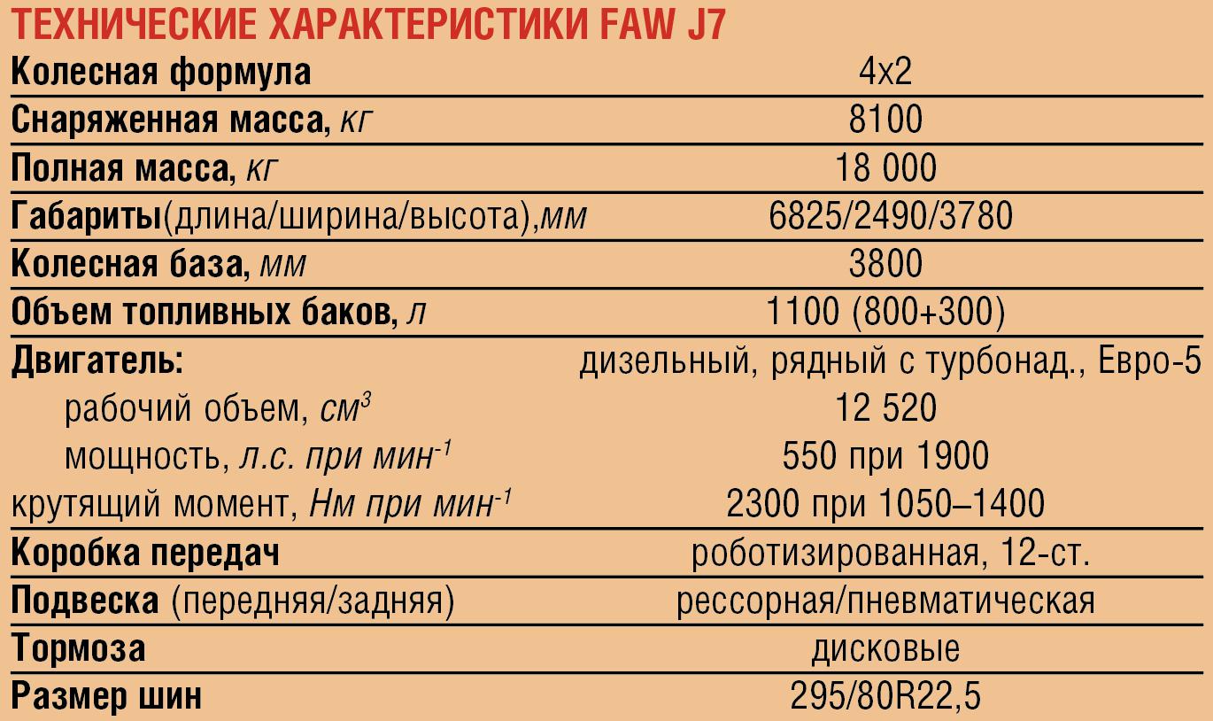 По виду FAW J7 (модель по-китайски называется мудрено — СА 4180Р77К25Е5) сразу понятно, что вдохновение инженеры из Поднебесной искали у представителей большой грузовой семерки. Это малотоннажный транспорт из Китая выглядит клонами японских грузовичков, а магистральные тягачи Made in PRC обязательно похожи на продукцию из Европы. Грузовик с колесной формулой 4х2. Двигатель CA6DM3‑55E52 объемом 13 л и мощностью 550 л. с. 12‑ступенчатая КП ZF Traxon 12ТX2420TD с адаптивным автоматическим переключением и прямой высшей передачей. Задний мост с одинарным редуктором и передаточным числом 2,688. Имеющаяся блокировка межколесного дифференциала должна повысить проходимость автопоезда. Согласитесь, все перечисленное звучит как описание характеристик «породистого» европейского тягача, тем более что и выглядит FAW J7 так же.