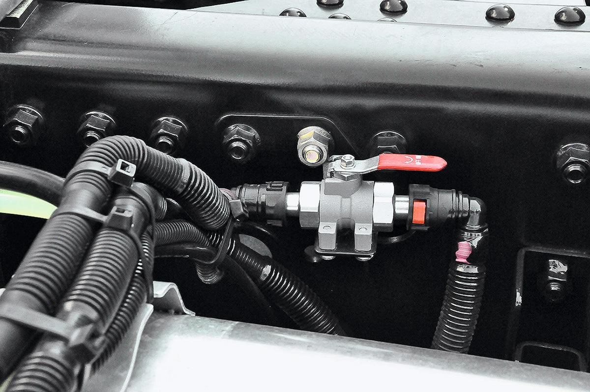 Производитель буквально нашпиговал тягач различными электронными помощниками, однако есть и проверенные решения. На основном топливном баке грузовика заметил ручку по типу шарового водопроводного крана, это переключатель жидкостного подогрева топливных баков (зимой проблем с запуском и замерзанием топлива быть не должно). Однако этот дедовский узел сделан с оглядкой на эргономику, ручка ярко-красного цвета с четко различимыми стрелками-указателями. Расстроило седельно-сцепное устройство, оно от именитого производителя, но расположено выше (1180 мм), чем у «европейцев».