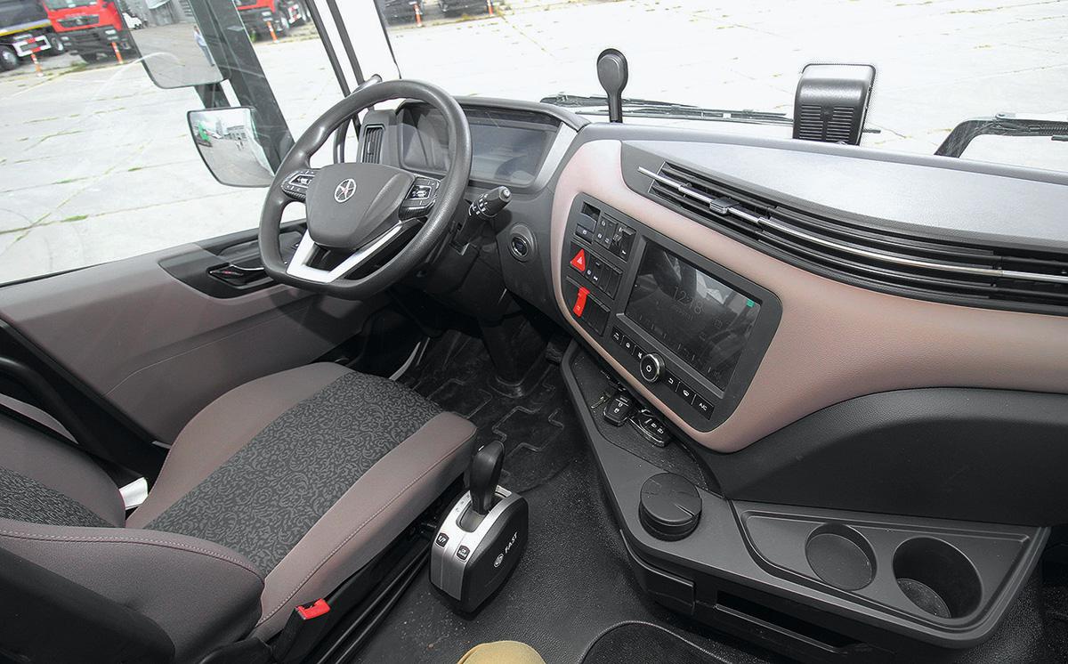 В настоящее время комплектация у Dayun V9 фиксированная, но она максимальная и включает все самое необходимое и востребованное перевозчиками. Мотор только один — рядная «шестерка» Weichai WP12.460E50 рабочим объемом 11, 6 л мощностью 460 л. с. и крутящим моментом 2110 Нм. С турбодизелем агрегатируется роботизированная 16‑ступенчатая коробка Fast Gear F16JZ26A с овердрайвом. Передаточное отношение ведущего моста — 2,85. По мнению поставщика, такое сочетание сулит перевозчикам улучшенную экономичность. К слову, аналогичное решение с 16‑ступенчатой коробкой и выбором передаточных чисел применяется на тягачах DAF XF. Перевозчики довольны.