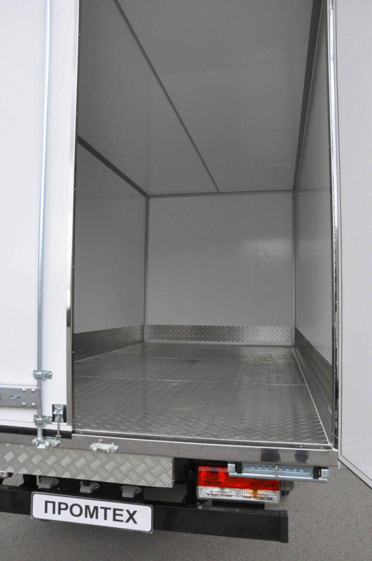 Машина внешне выглядит так, что сразу понятно – в ее основе лежит азиатская конструкторская школа: все округло и компактно согласно японскому подходу к проектированию малотоннажных автомобилей в конце прошлого века. Возможно, что из-за этого радиатор кондиционера вертикально размещен на раме за кабиной. Зато «Промтех» снабдил его дополнительной стальной защитой, за что им отдельное спасибо.