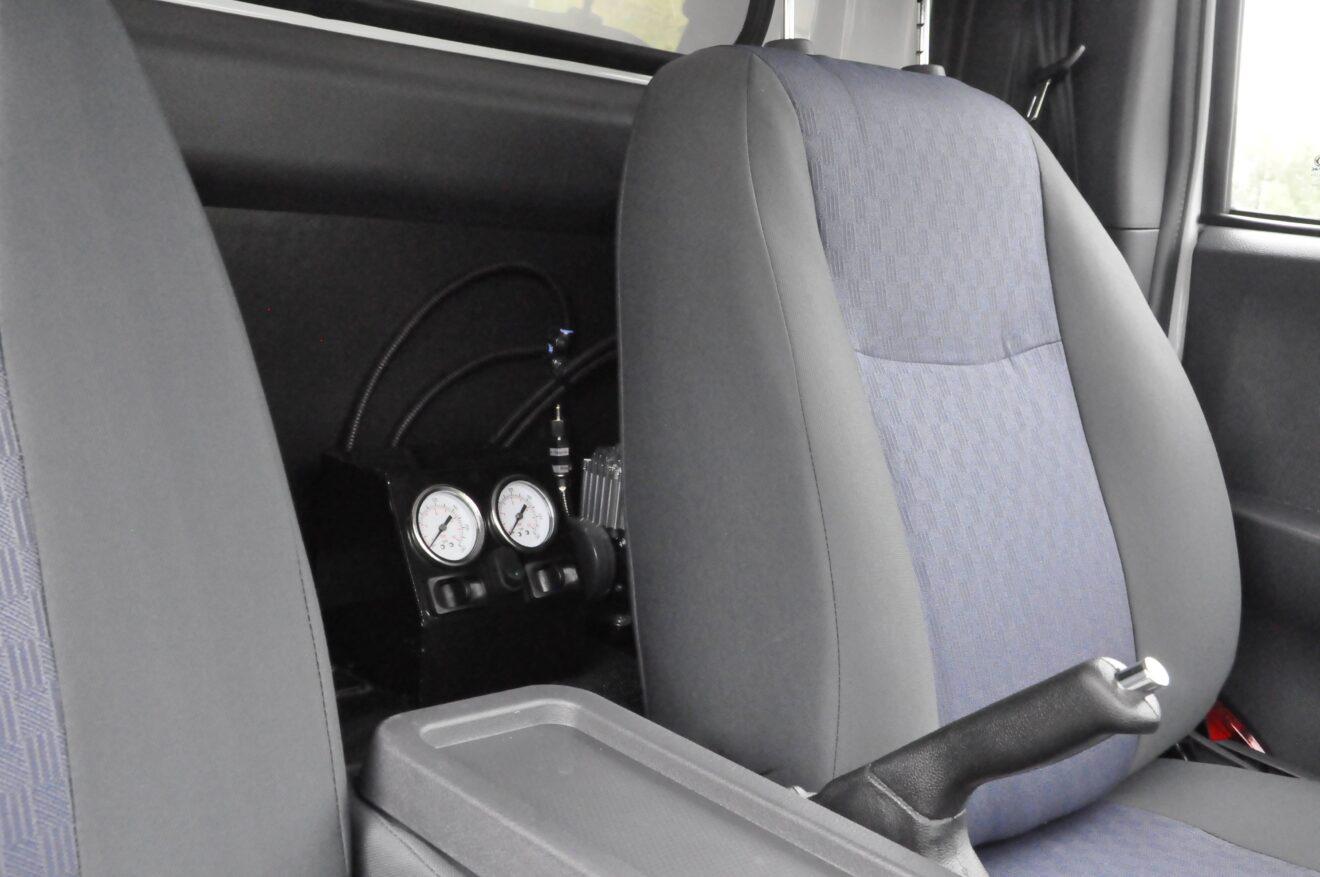 Так как «Промтех» свои машины традиционно комплектует элементами пневмоподвески, есть она и в грузовом «китайце». В кабине за спинкой водительского сиденья спрятан компрессор с манометрами, а задняя подвеска усилена пневмобаллонами. Для чего полуторатонной машине задняя двухконтурная пневмоподвеска? На ней же грузы возить, а не людей? Заводские маркетологи ответили: «Для повышения комфорта, улучшения управляемости и нивелирования последствий неравномерной загрузки». Звучит хорошо, однако большого смысла в этой затее не вижу. Когда автомобили скорой помощи от «Промтеха», их выпускают на основе Lada, снабжают «пневмой» – это понятно. Коммерческие версии Lada в версии Prima с элементами пневмоподвески тоже понятны, нужен некий запас по грузоподъемности. Для чего подобное решение на грузовике с рессорной подвеской, которому по плечу полторы тонны груза, а изначально машина сделана с куда большей грузоподъемностью, чем заявлено по паспорту? Возможно, в этом решении кроются корни исконно русской поговорки о том, что запас, каким бы он ни был и в чем ни измерялся, еще никому не помешал.