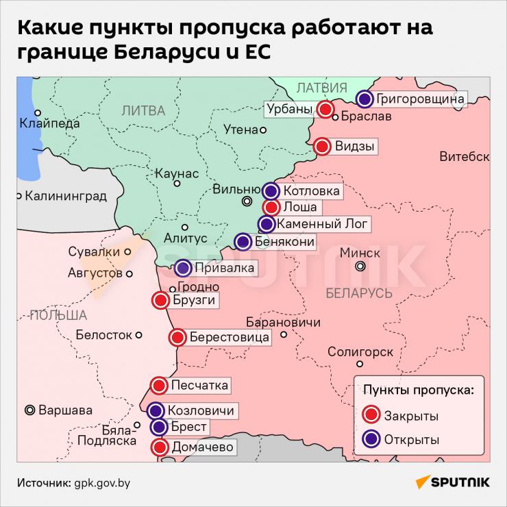 "В связи с закрытием пунктов пропуска между Белоруссией и Польшей для грузовых транспортных средств в настоящее время основные грузопотоки приходятся на пункты пропуска Латвии и Литвы. Пропускная способность данных пунктов пропуска не рассчитана на высокую интенсивность", - пояснили в ведомстве.