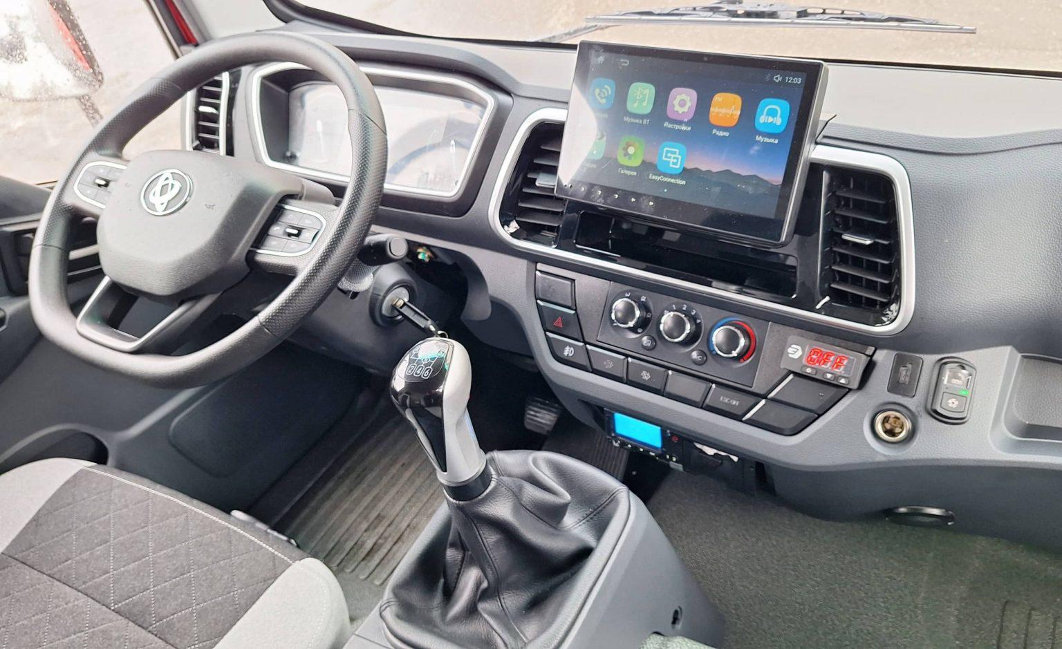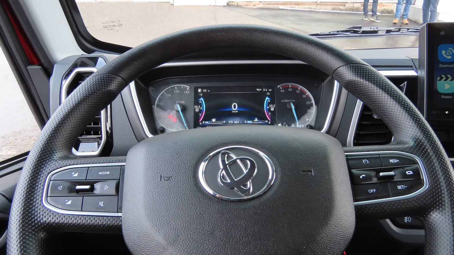 К явным минусам можно отнести отсутствие зазора между рычагом коробки передач и передней панелью, достаточного для того, чтобы водитель мог переходить из правой части салона в левую и обратно. Такая возможность крайне важна для развозных грузовиков, часто работающих в условиях тесной городской застройки. А в числе явных плюсов — отсутствие в задней стенке кабины традиционного для китайских грузовиков окна, одного из главных источников холода. Хотя китайские товарищи поначалу на нем упорно настаивали. Руль сделан мультифункциональным: на него вынесено управление радиоприемником, круиз-контролем и системой handsfree.