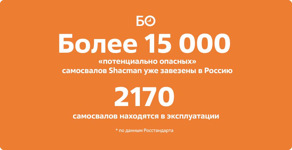 По данным Росстандарта, на территорию России было ввезено больше 15 тыс. «потенциально опасных грузовиков», из которых 2 170 уже находятся в эксплуатации. Какой период охватывает статистика ведомства, не указано. Но, например, по данным аналитического агентства «Автостат», только за прошлый год по всей России было продано около 15 тыс. крупнотоннажных грузовиков бренда Shacman, из которых треть тот самый «запрещенный» самосвал. По статистике агентства (которое относит к сегменту HCV грузовые автомобили полной массой более 16 т), крупногабаритные Shacman по продажам в прошлом году заняли 3-е место на рынке, чуть уступив «КАМАЗу» и китайской марке Sitrak.
