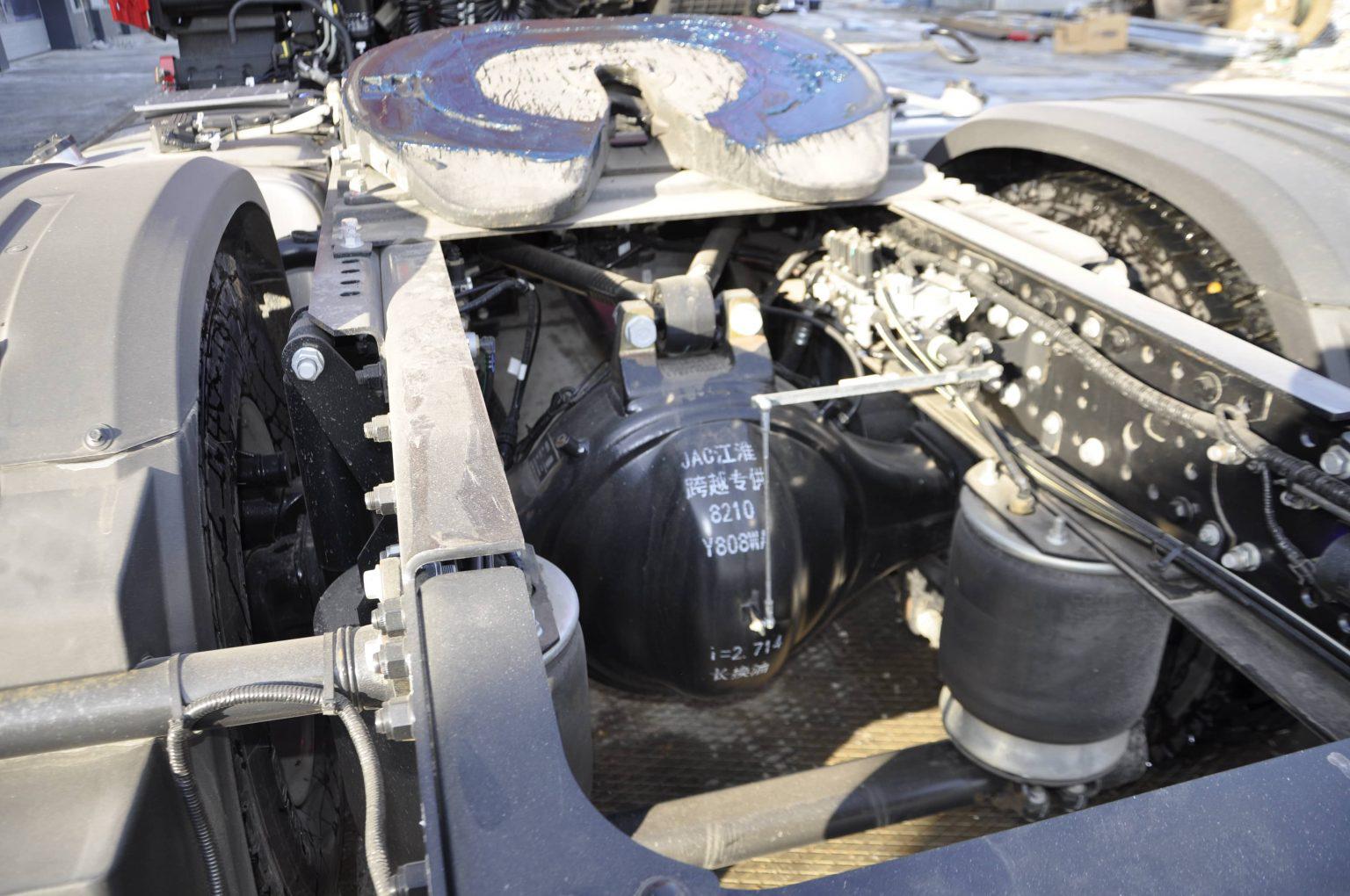 Спереди у автомобиля стоят двухлистовые рессоры, сзади — четыре пневмобаллона. Передний мост Dana имеет двутавровое сечение, жидкую смазку в ступицах и держит нагрузку в 7 тонн. Задний, с маркировкой JAC, характеризуется допустимой нагрузкой в 13 тонн, передаточное число главной пары — 2,714.