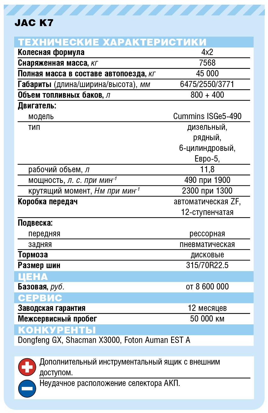 Я отъездил на грузовике с полуприцепом, пусть пустым (для поездки с грузом требовалось оформление специальных документов), целый день. По меркам дальнобоя совсем немного. Однако определенное мнение о флагманской модели марки JAC составить удалось.