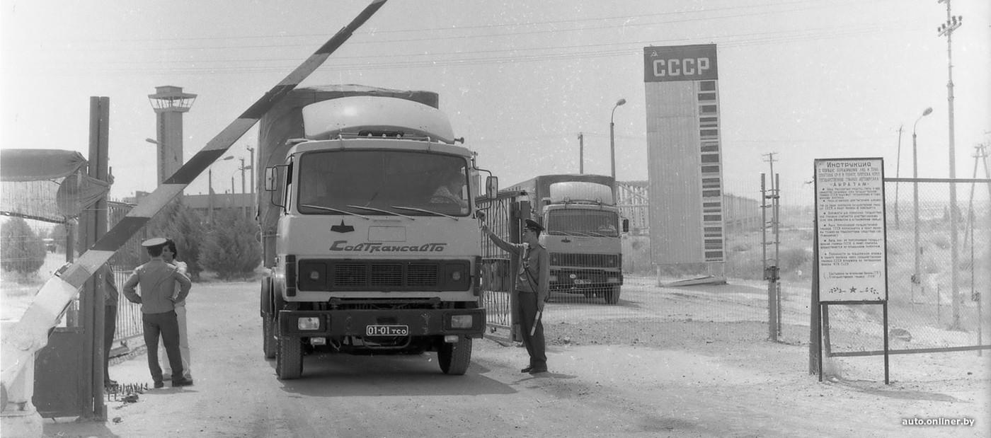 Появилась и база «Совтрансавто» в узбекском городе Термез на границе с Афганистаном. На снимке ниже запечатлены МАЗы именно термезского отделения. Азиатские маршруты «Совтрансавто» пролегали через Афганистан, Иран, Ирак, Сирию и Турцию.