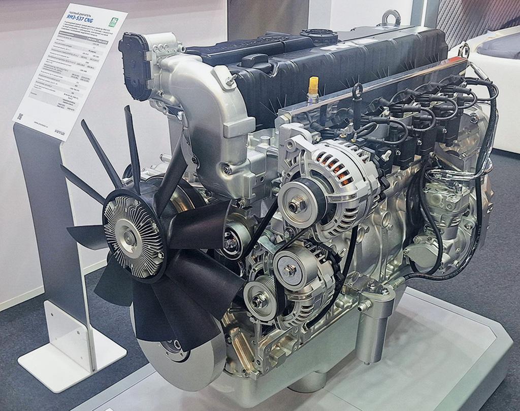 «Ярославский моторный завод» привез на выставку два новых газовых двигателя. Первый — рядный 6‑цилиндровый ЯМЗ-537 CNG, разработанный на базе недавно запущенного в серийное производство дизеля ЯМЗ-537 объемом 7,7 л. В зависимости от модификации, его максимальная мощность — 230 или 310 л. с. В перспективе этим газовым двигателем можно оснащать грузовики МАЗ, «Урал» и «Валдай» тяжелого класса, а также широкую линейку отечественных автобусов.