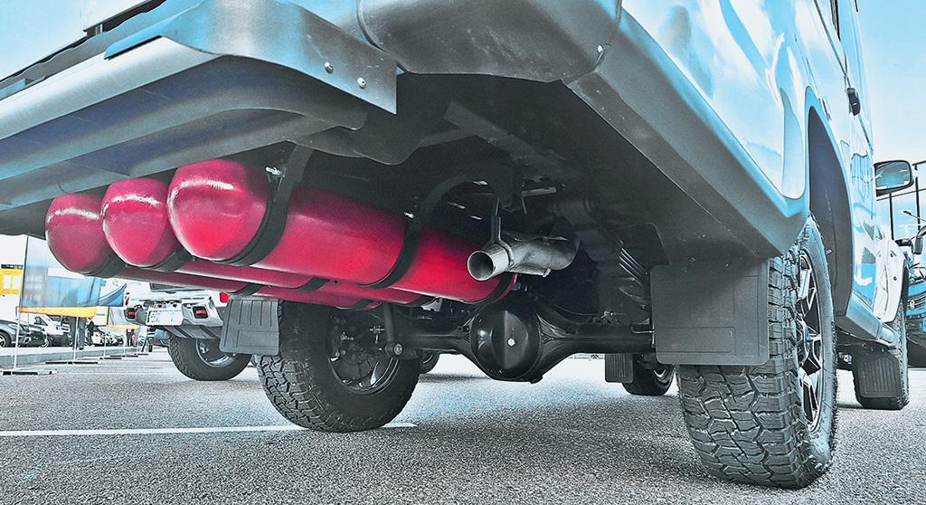 В сжатом виде метан хранится в трех баллонах, расположенных в заднем свесе под кузовом. Рассматриваются различные варианты размещения еще нескольких баллонов для увеличения запаса хода.