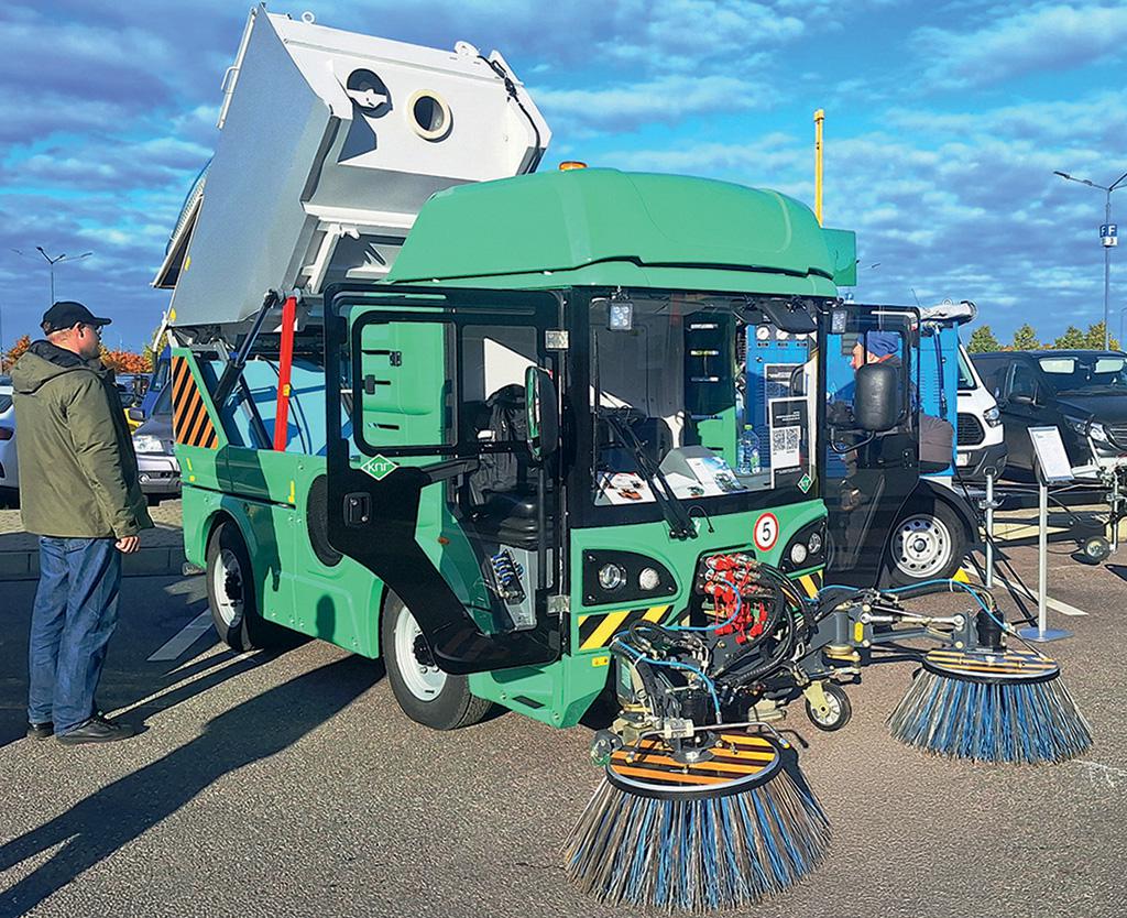 «Машиностроительный завод имени М. И. Калинина» из Екатеринбурга, чья коммунальная техника известна под аббревиатурой ЗиК, в рамках форума продемонстрировал модифицированную вакуумную подметальную машину МК2000 с 2‑кубовым бункером. Она выпускается не первый год, но в этот раз ее показали, во-первых, в газовом исполнении, а во-вторых, с автоматизированной системой управления передними щетками. Раньше для их настройки водителю приходилось выходить наружу и заниматься регулировкой вручную. Теперь же он управляет данным процессом из кабины, со своего рабочего места, что гораздо удобнее. Для применения в нашем климате важно, что МК2000 вместо щеток может комплектоваться сменным оборудованием для расчистки снега, причем не только отвалом, но и шнековым уборщиком.