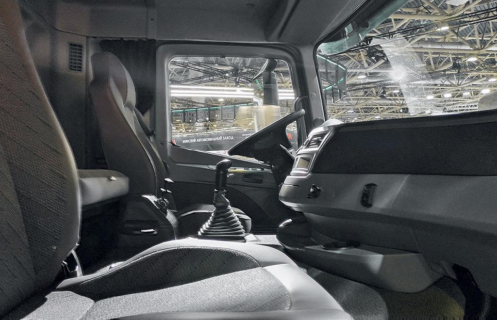 Под кабиной, в моторном отсеке «Валдая 33», расположена рядная «шестерка» рабочим объемом 11,8 л и максимальной мощностью 398 л. с. По сути, это тот же дизель, что и у ранее освоенного в производстве магистральника «Валдай 45», но с меньшими выходными характеристиками. И кабина фактически та же, но несколько ниже. Ей сохранили ширину в 2,5 метра, но крышу сделали стандартной, а не увеличенной высоты, потому что спальное место всего одно. Конечно, оно не такое роскошное, как у магистральников, но полноценное, вполне достаточного размера, чтобы водитель мог нормально передохнуть, вытянувшись в полный рост (длина полки — 2260 мм, ширина в широкой и узкой частях — 520 и 370 мм соответственно). Пневмоподрессоривание кабины в двух точках и сиденья водителя повышает комфорт во время работы. Вместо пластикового применен не боящийся повреждений металлический передний бампер. В паре с двигателем установлена 12‑ступенчатая механическая коробка передач в вариантах с ручным или с автоматизированным переключением. На всех колесах использованы барабанные тормозные механизмы с электронным управлением. В базовое оснащение включены системы: АБС и курсовой устойчивости.
