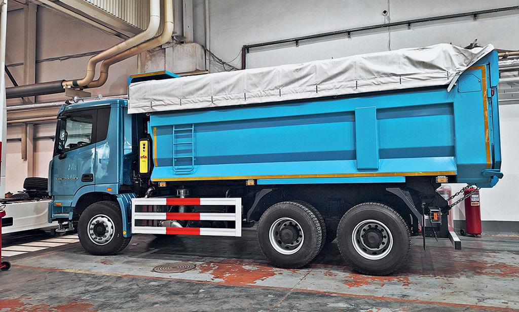 Кузов самосвала вместимостью 18 кубов — тоже российский, выполненный из высокоуглеродистой стали S500 и снабженный системой подогрева. Толщина его днища составляет 8 мм, бортов — 6 мм. Конструкция кузова приспособлена для работы с асфальтоукладчиком и для размещения оборудования, применяемого при очистке автодорог. Например, предприятиям, специализирующимся на их содержании, уже продемонстрирован прототип комбинированной дорожно-уборочной машины КДМ 700 АВГ на шасси «Валдай 33», в комплектацию которой вошли: распределитель твердых реагентов с 11‑кубовым бункером, межосевая подметальная щетка с шириной обработки 2,5 м, а также передний быстросъемный отвал Bucher шириной 3,4 м.