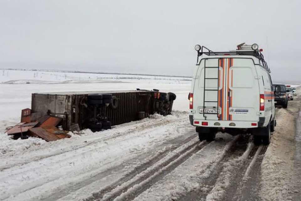ДТП произошло около 4 часов ночи. Как сообщили в областном МВД, 36-летний водитель фуры на 22 км трассы не выбрал безопасную скорость, потерял управление и съехал в кювет, там грузовик перевернулся на бок.