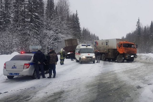 Авария с двумя КамАЗами произошла на трассе Пермь-Березники в Прикамье 26 февраля.