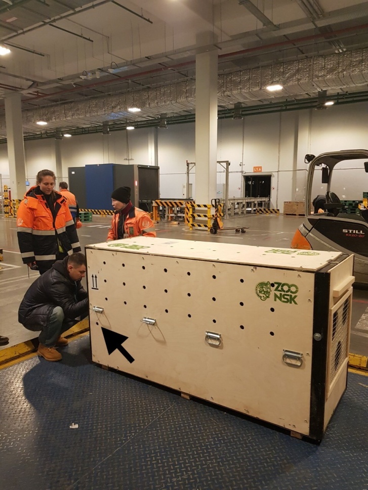 До Москвы тигрицу везли автотранспортом, потому что сейчас из Новосибирска в столицу не летают самолеты, способные взять к перевозке такой большой груз. Вместе с Таисией летели сотрудники зоопарка, которые наблюдали за ней в дороге.