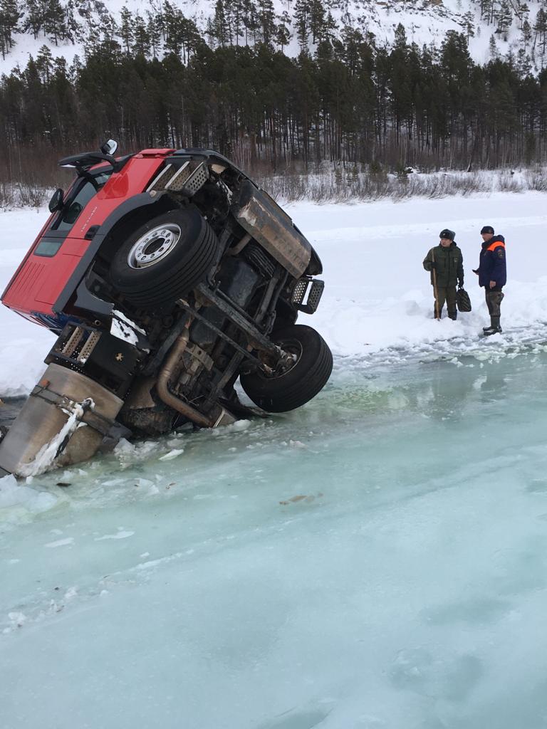 Грузовой автомобиль-тягач марки «MAN» провалился под лед в местности «Точильное» на р. Лена на автозимнике «Умнас».