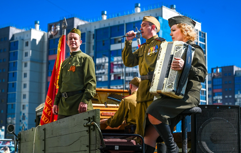 — У меня была давно мечта, и я её наконец осуществил, — рассказал ветеран боевых действий челябинского регионального отделения «Офицеры России» Владимир Саломатин. — Взяли грузовик военных лет, поставили на него пианино и поехали поздравлять ветеранов. Заезжаем во двор. Ветераны выходят на балкон, а мы им играем… Ездить вот так колонной по городу и играть на пианино будем весь день 9 Мая.