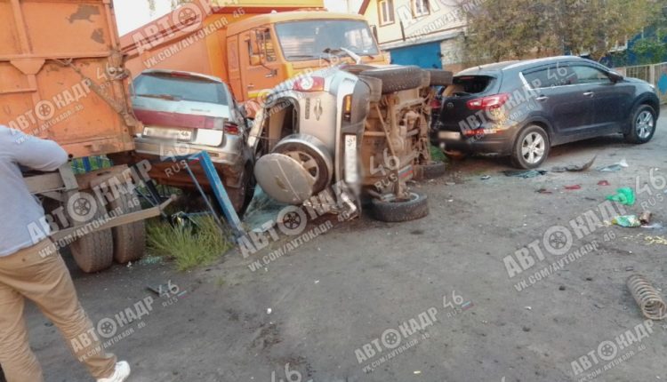 Как сообщили свидетели аварии в группе «Автокадр_46», участниками ДТП стали два грузовика дорожной службы и три легковушки. По предварительным данным, один из автомобилей врезался в несколько стоящих, ранены два человека.