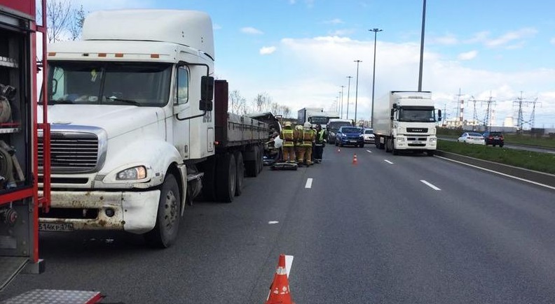 Около 12:10 на Софийской улице на участке от Южной ТЭЦ в сторону Колпино 60-летний водитель «ГАЗели» врезался в остановившийся в правом ряду грузовик Freightliner с прицепом.