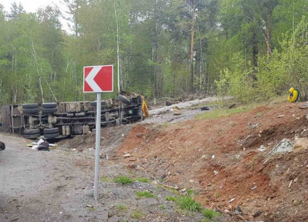 Сегодня около 11:30 часов по местному времени на 33 километре федеральной автодороги «Байкал» в Шелеховском районе Иркутской области опрокинулся большегруз «Шахман».