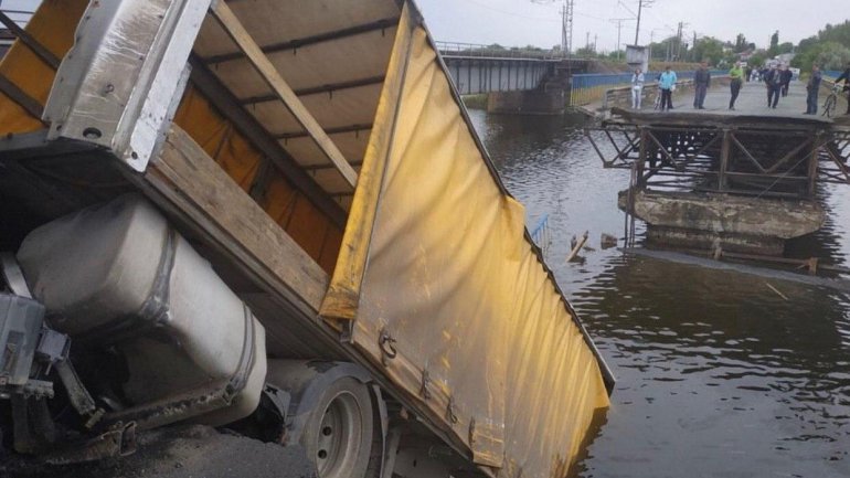 Фуру, которая провалилась на Алексеевском мосту, до сих пор не вытащили.