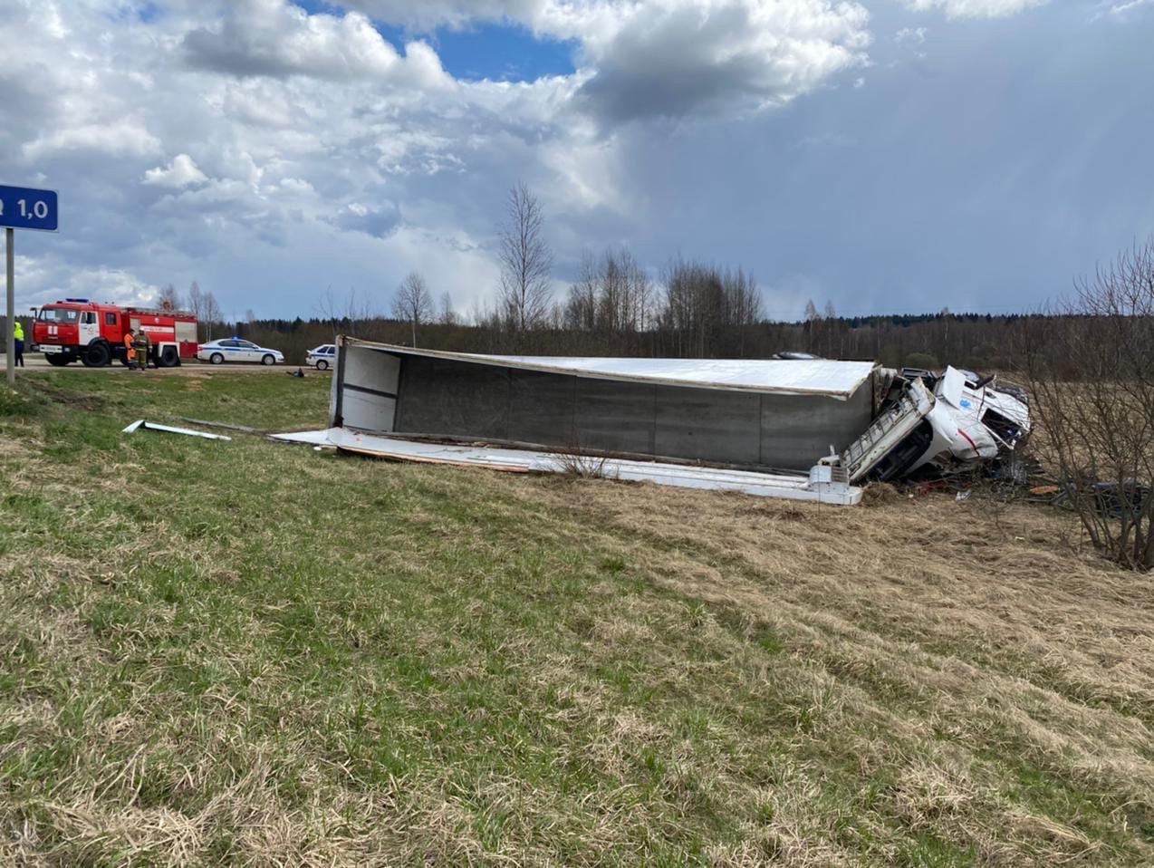 На 273 километре трассы М-9 опрокинулся большегруз. Как сообщает ГИБДД по Тверской области, у "Скании" взорвалось переднее колесо. Водитель не справился с управлением, машина вылетела в кювет и опрокинулась на бок.