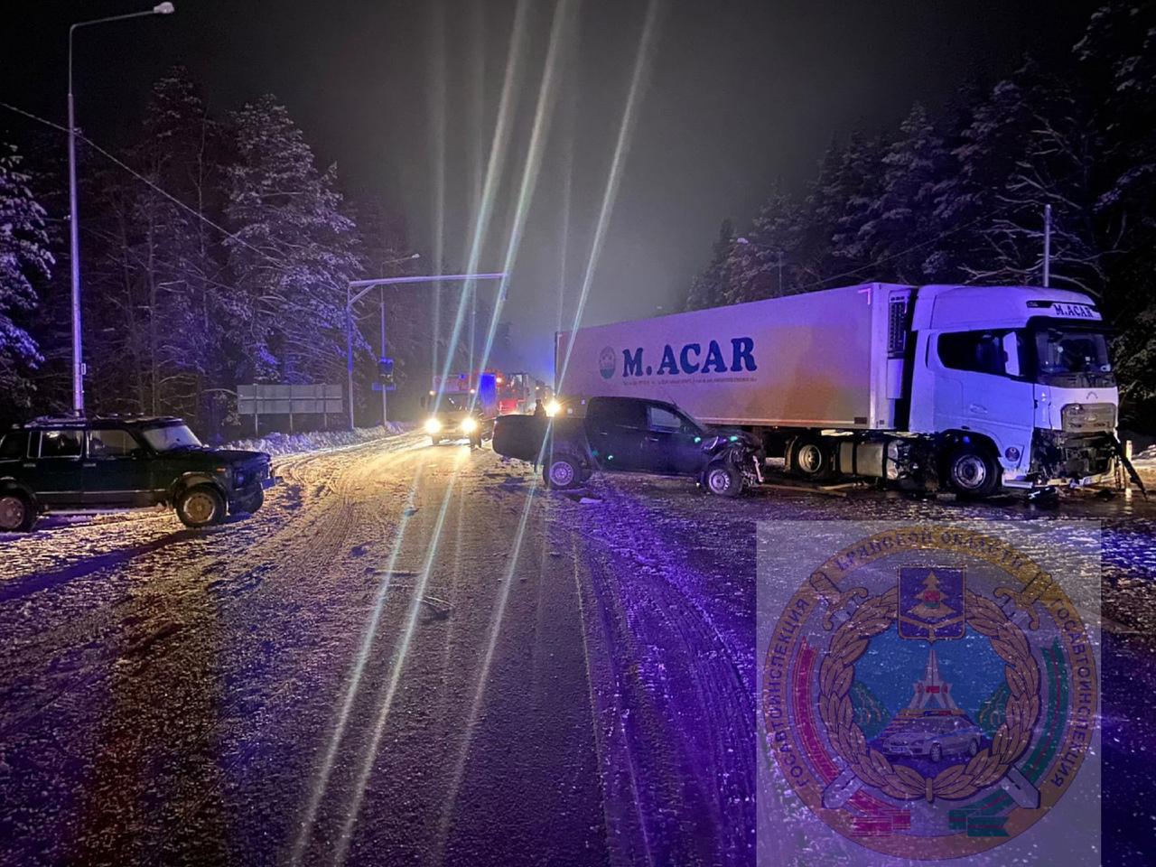 Последнюю отбросило на правую обочину, а большегруз вылетел на встречную полосу, где столкнулся с иномаркой MITSUBISHI L200. Официальный комментарий опубликовали на сайте регионального УГИБДД. Сообщается, что пострадавших нет.