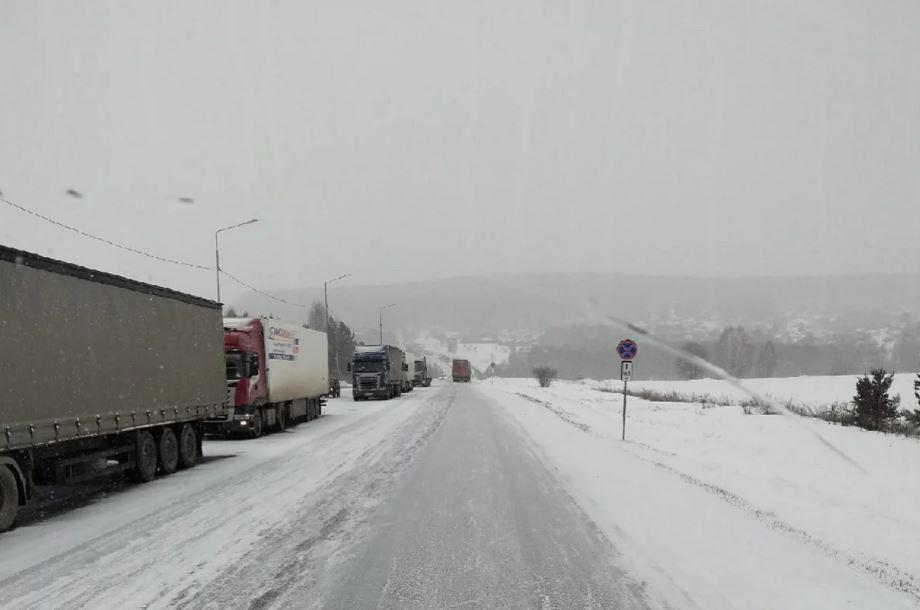 По словам автомобилистов, заторы связаны в том числе и с тем, что в сложных погодных условиях — в горах идет снегопад — большегрузы буксуют и не могут подняться в гору. Из-за этого сильно замедляется движение всего потока машин.
