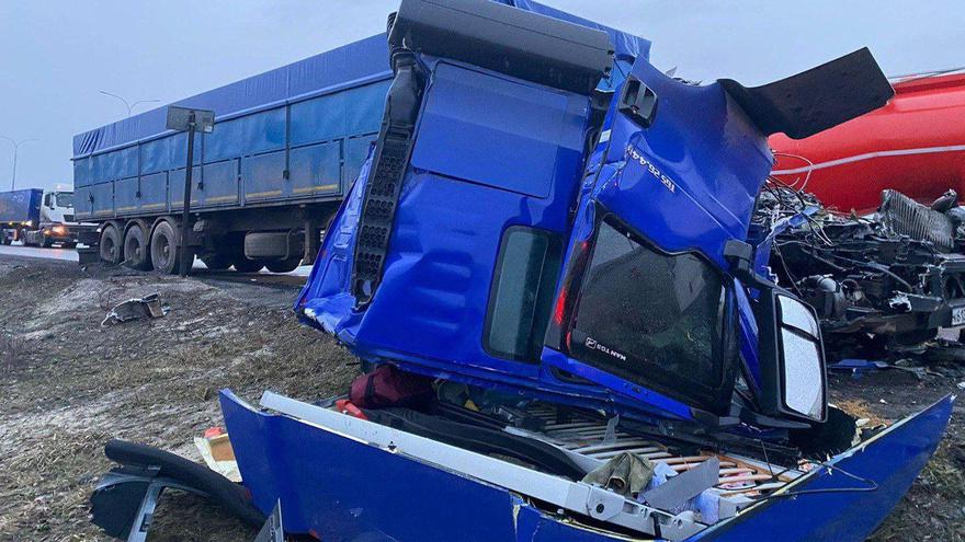 По данным полиции, 32-летний житель Краснодарского края на грузовике МАН с полуприцепом ехал со стороны Москвы в Ростов-на-Дону. На воронежской трассе водитель не выдержал безопасную дистанцию до ехавшего впереди автопоезда КамАЗ и врезался в его полуприцеп. За рулём КамАЗа сидел 45-летний житель Ставропольского края.