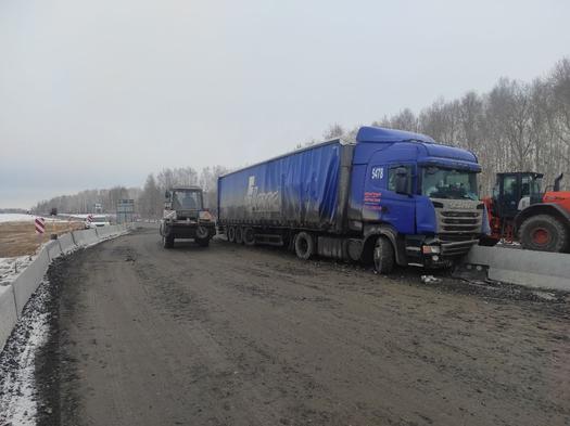 Сегодня, 1 апреля, ночью на 59-м километре федеральной трассы Тюмень — Омск водитель за рулём большегруза Скания не заметил предупреждающие знаки о дорожных работах и въехал в бетонное ограждение. Сейчас фуру пытаются убрать с дороги, поэтому движение временно ограничено, предупредили в областной Госавтоинспекции.