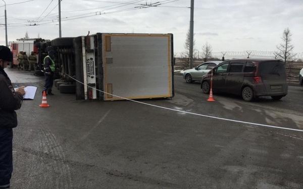 Сегодня утром у Ленинградского моста перевернулся большегрузный автомобиль «Скания», перегородивший часть дороги. Как сообщили в ГИБДД Омской области, по предварительной версии, 32-летний водитель фуры, следовавшей по ул. Суворова, в районе дома №109 при повороте налево опрокинул автомобиль. Водителю большегруза потребовалась медицинская помощь.