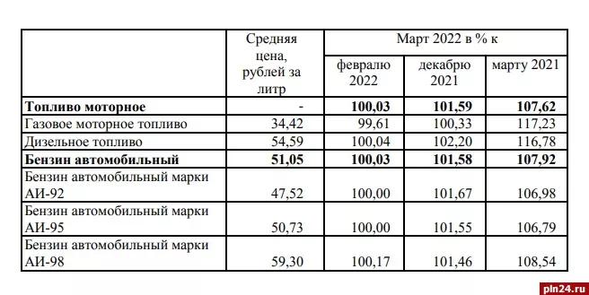 По данным Псковстата, за март по сравнению с предыдущим месяцем цена моторного топлива и бензина осталась практически на прежнем уровне.