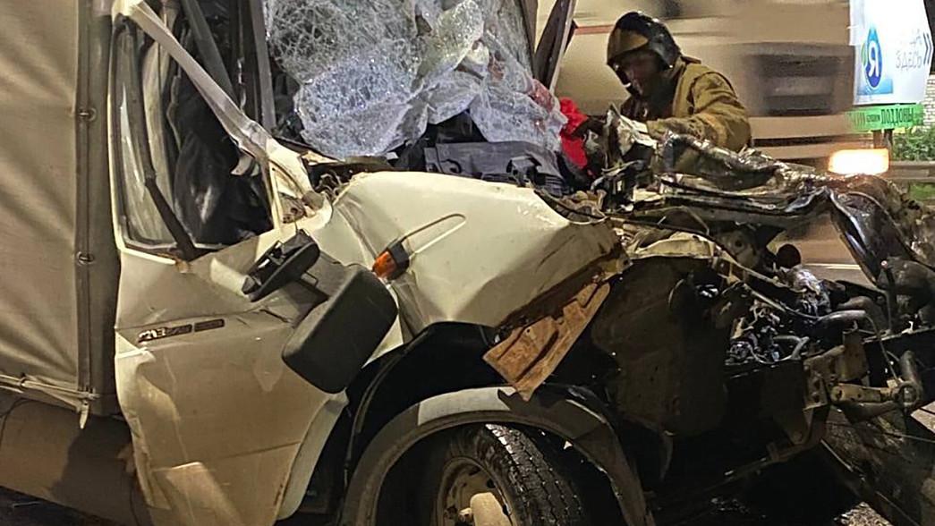 По предварительным данным, 49-летний мужчина, находясь за рулем грузового автомобиля, зацепил другой такой же грузовик, после чего врезался в едущий фургон.